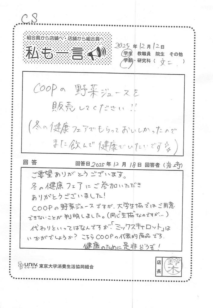 COOPの野菜ジュースを販売して・・・