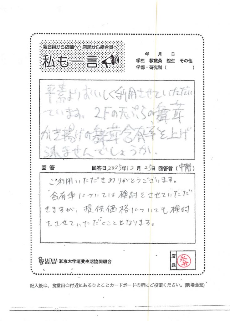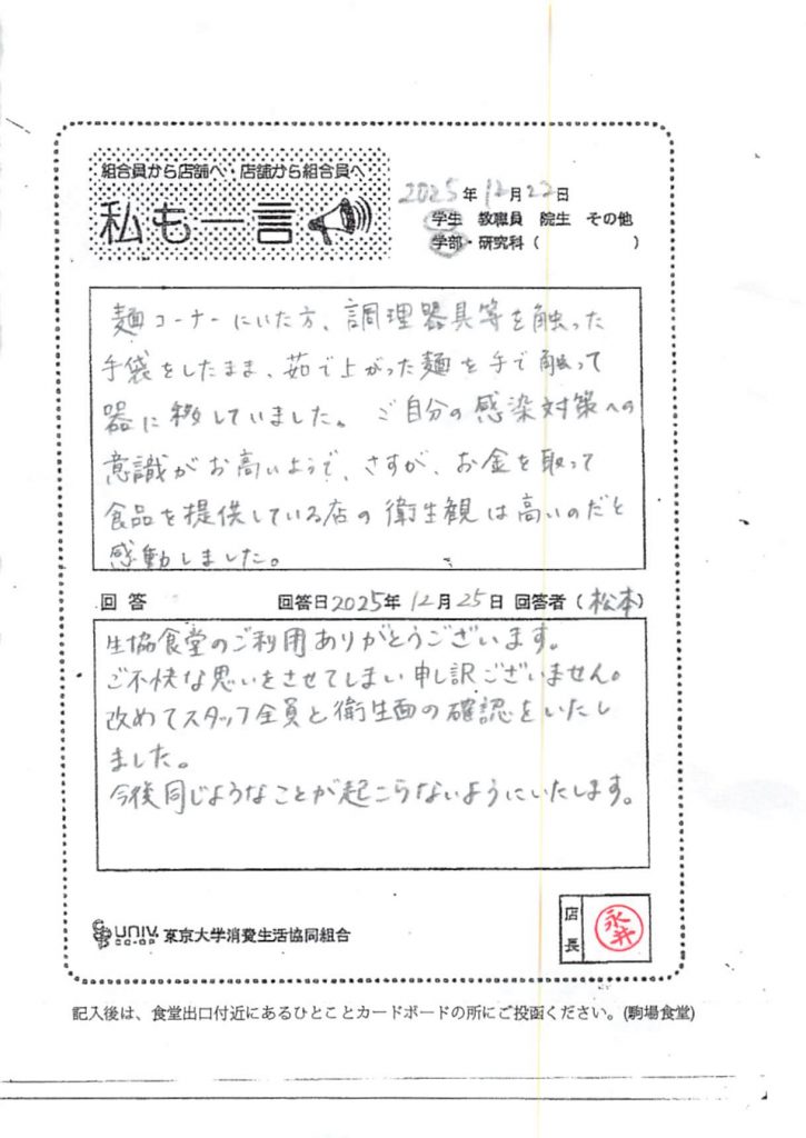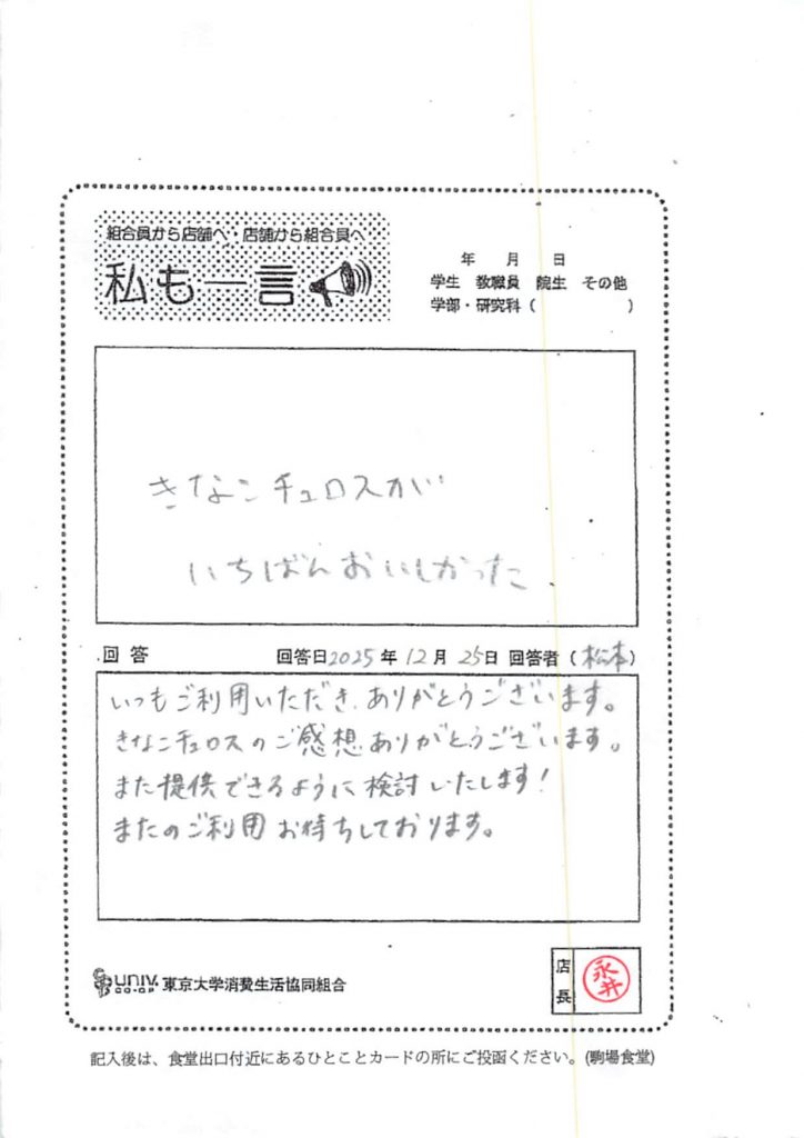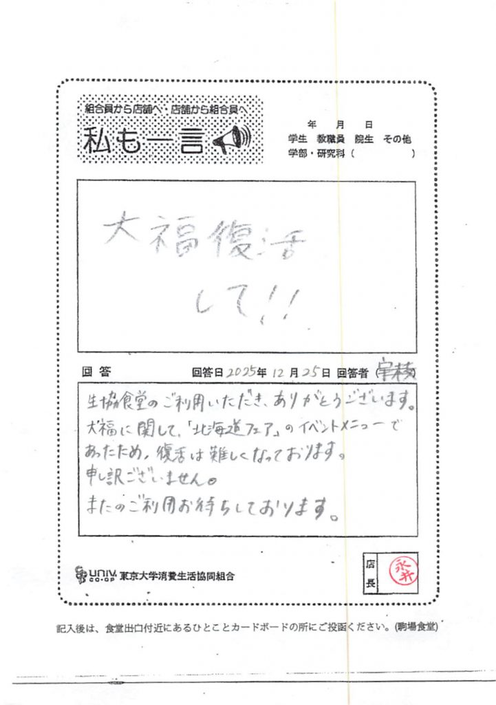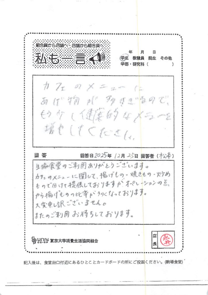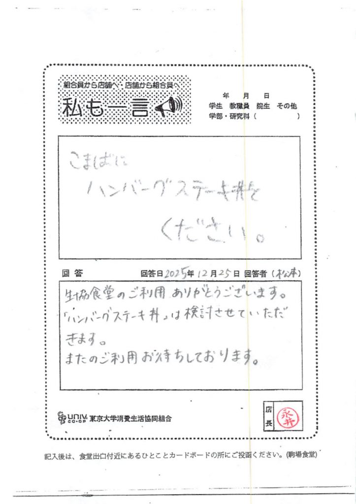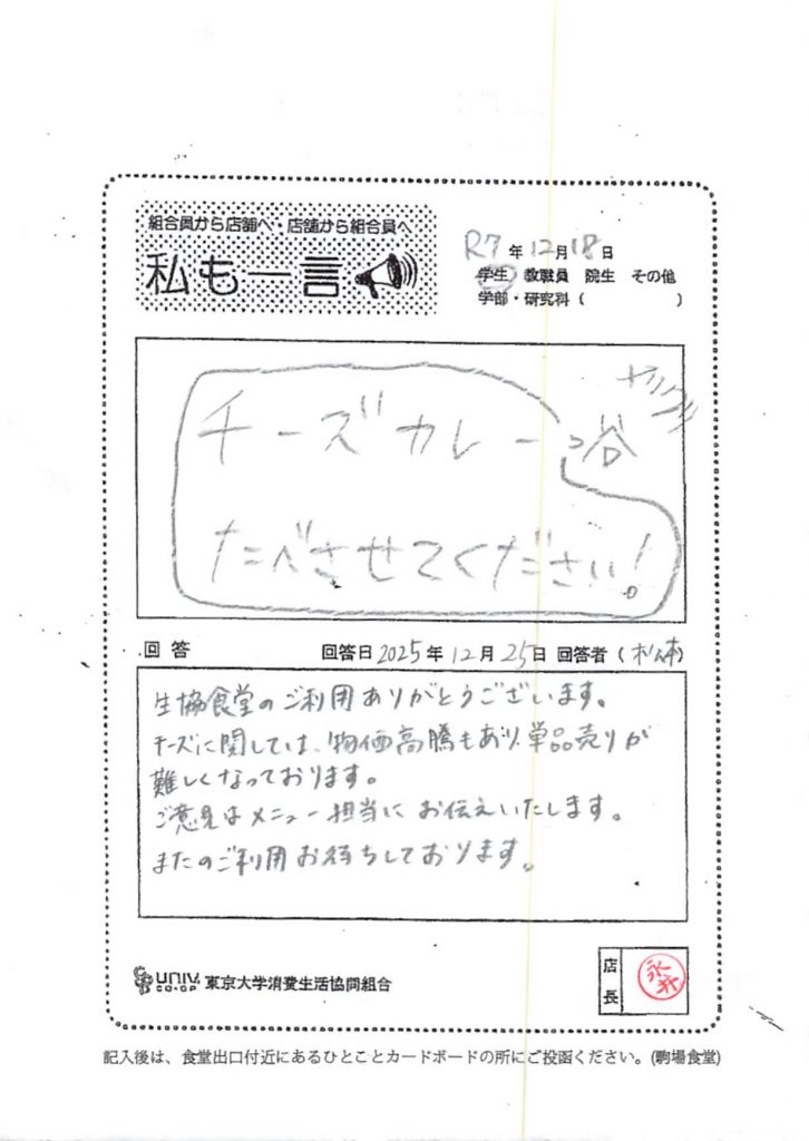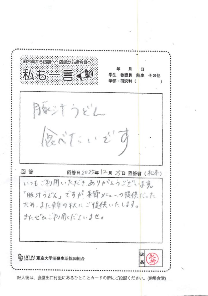 ひとことカード集 駒場食堂