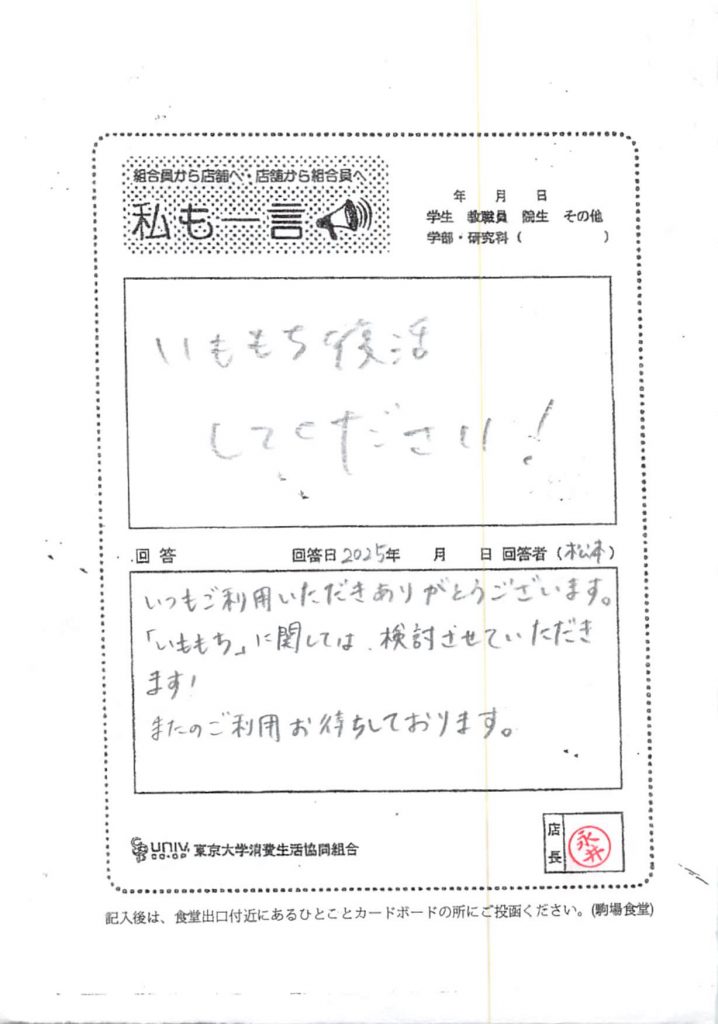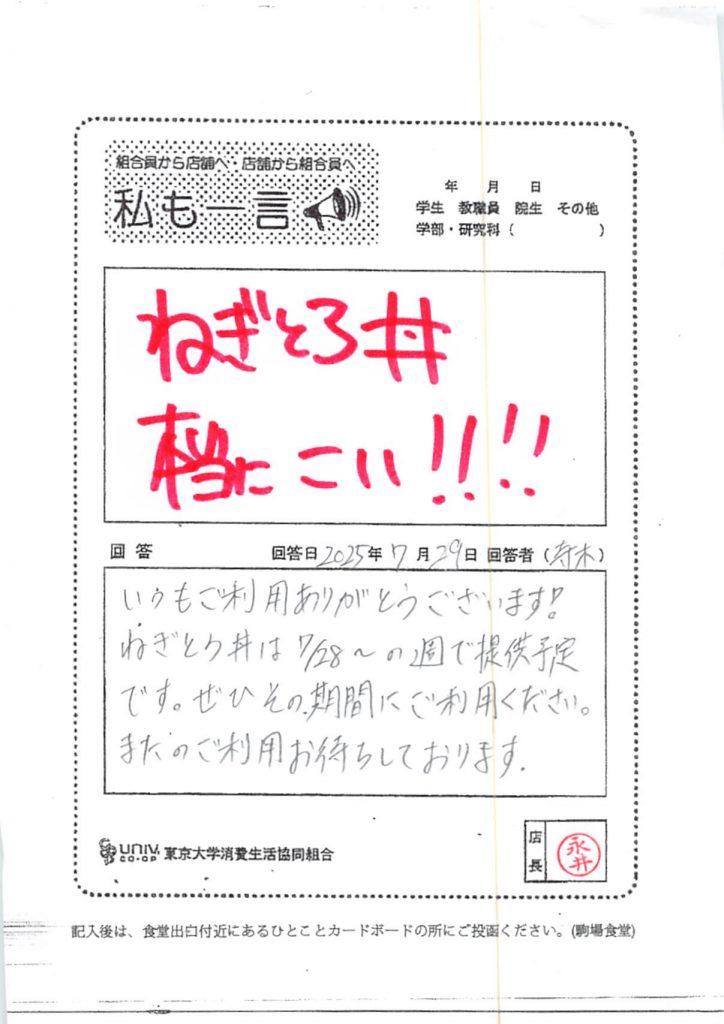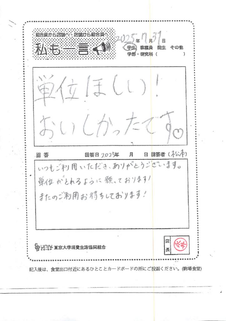 ひとことカード集 駒場食堂