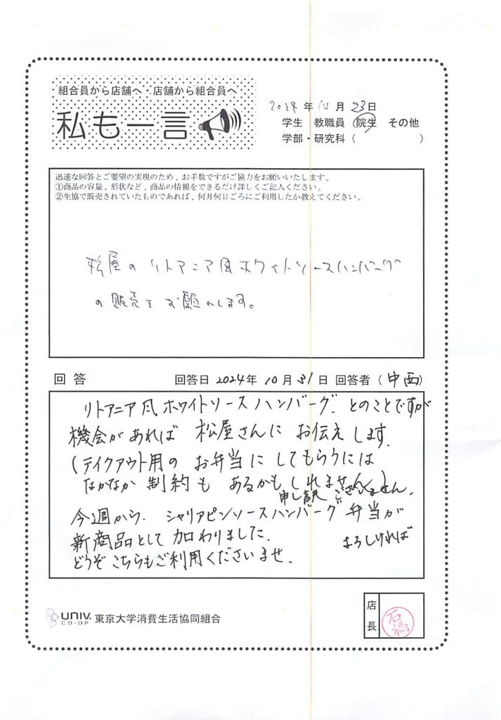 松屋のリトアニア風ホワイトソースハンバーグの販売を・・・