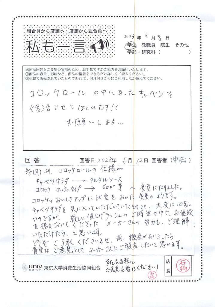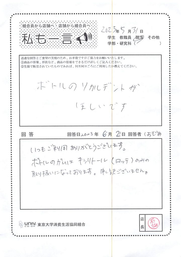 東大生協について