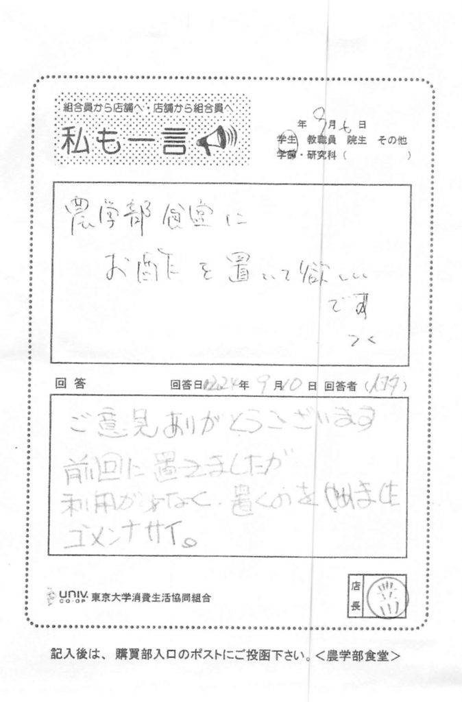 東大生協について