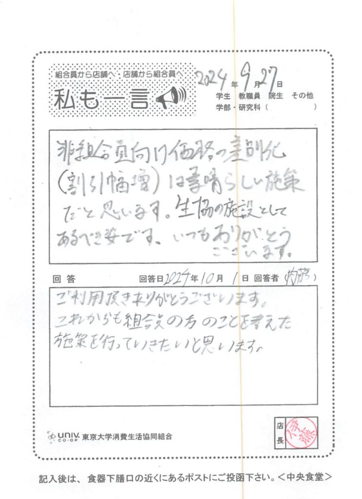 非組合員価格の差別化は素晴らしい施策だと・・・