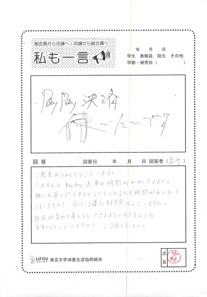 PayPay決済使いたい・・・