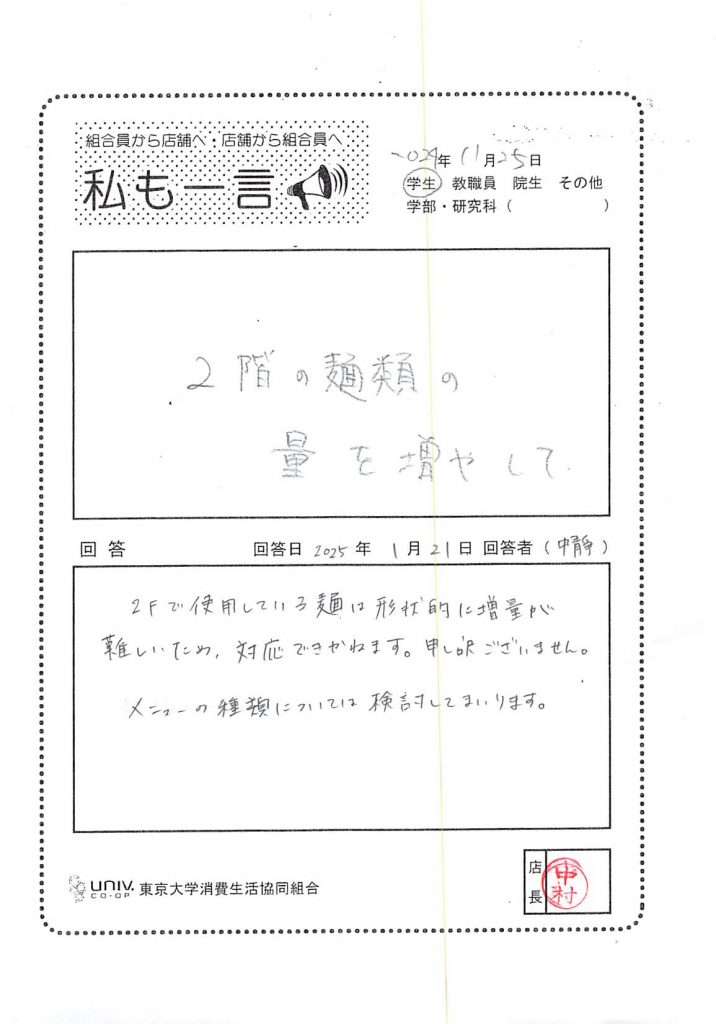 2階の麺類の量を増やして・・・