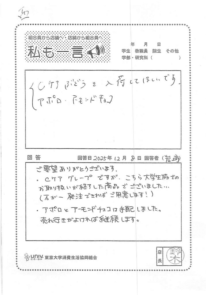 東大生協について