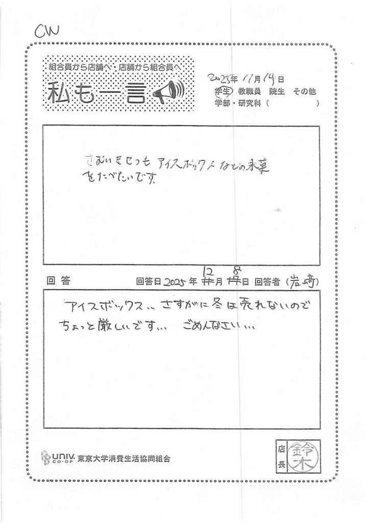 さむいきせつもアイスボックスなどの氷菓を・・・