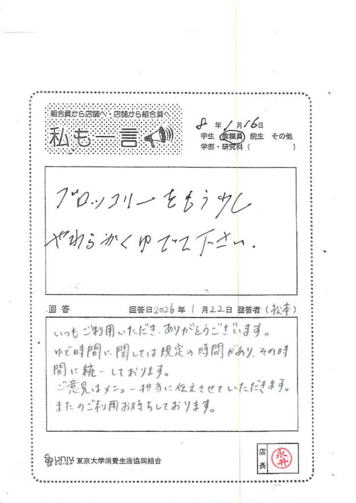 ブロッコリーをもう少しやわらかくゆでで・・・