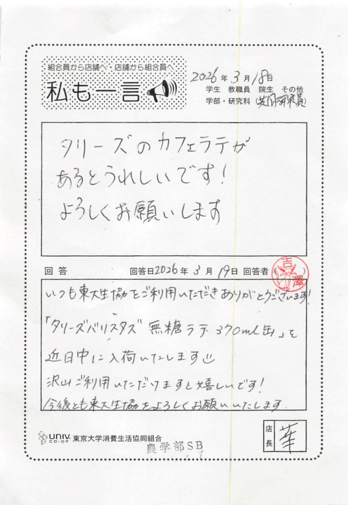 東大生協について