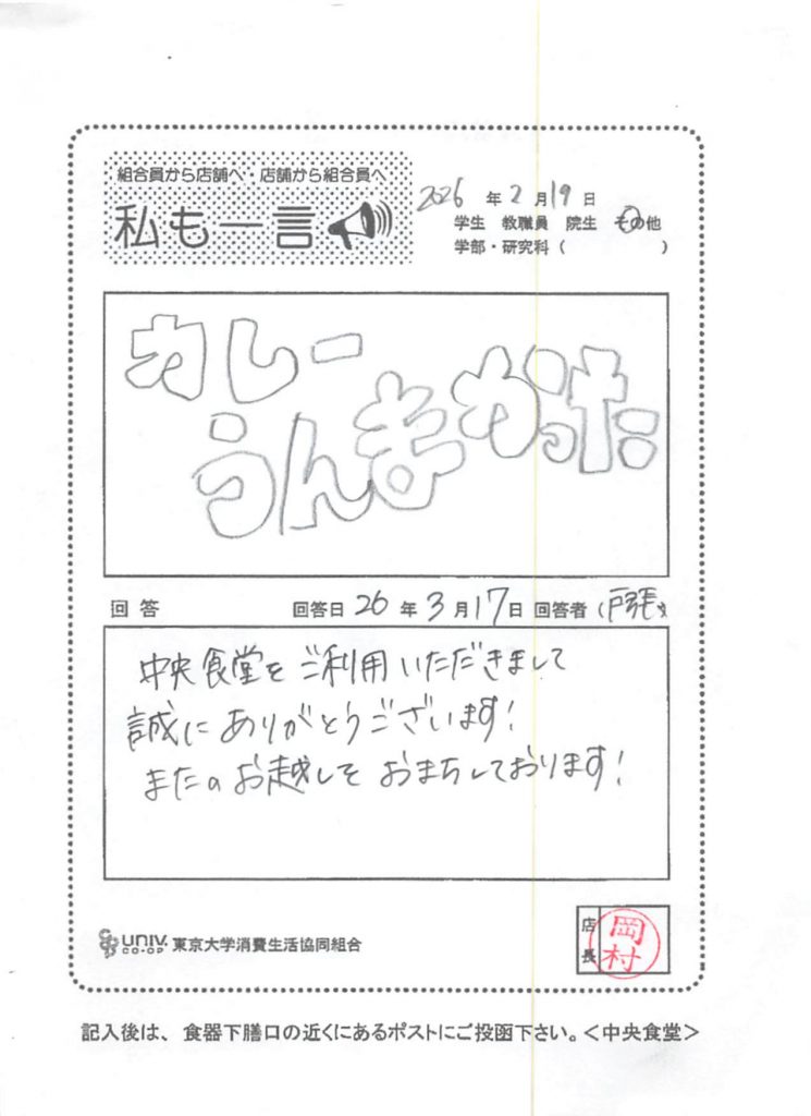 東大のおいしいカレーを増やして・・・