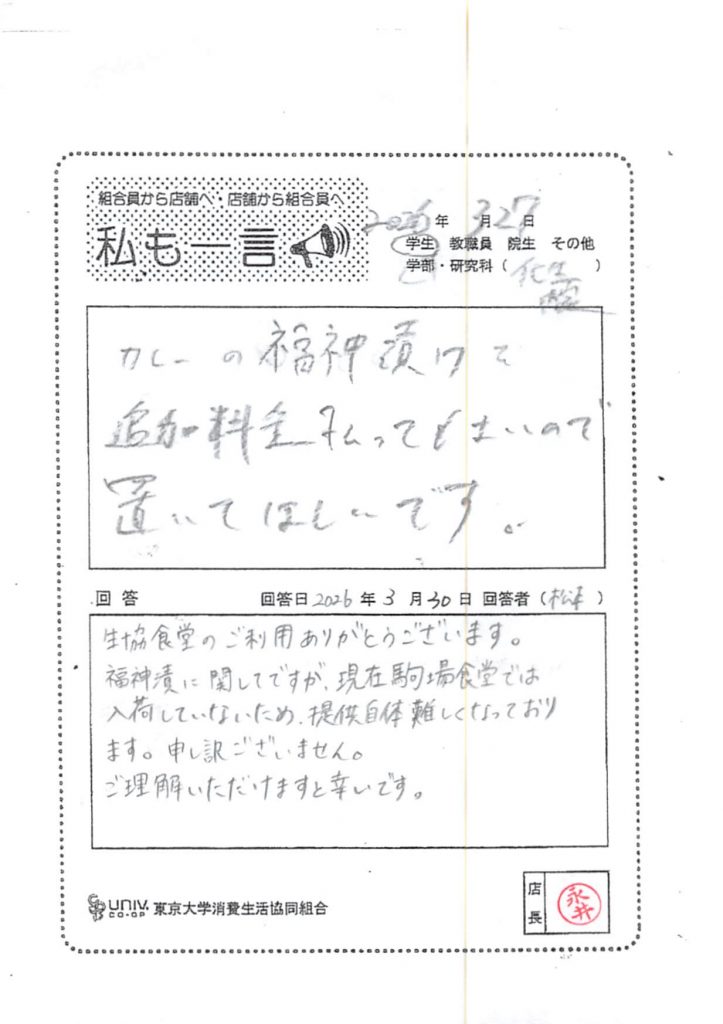 東大生協について