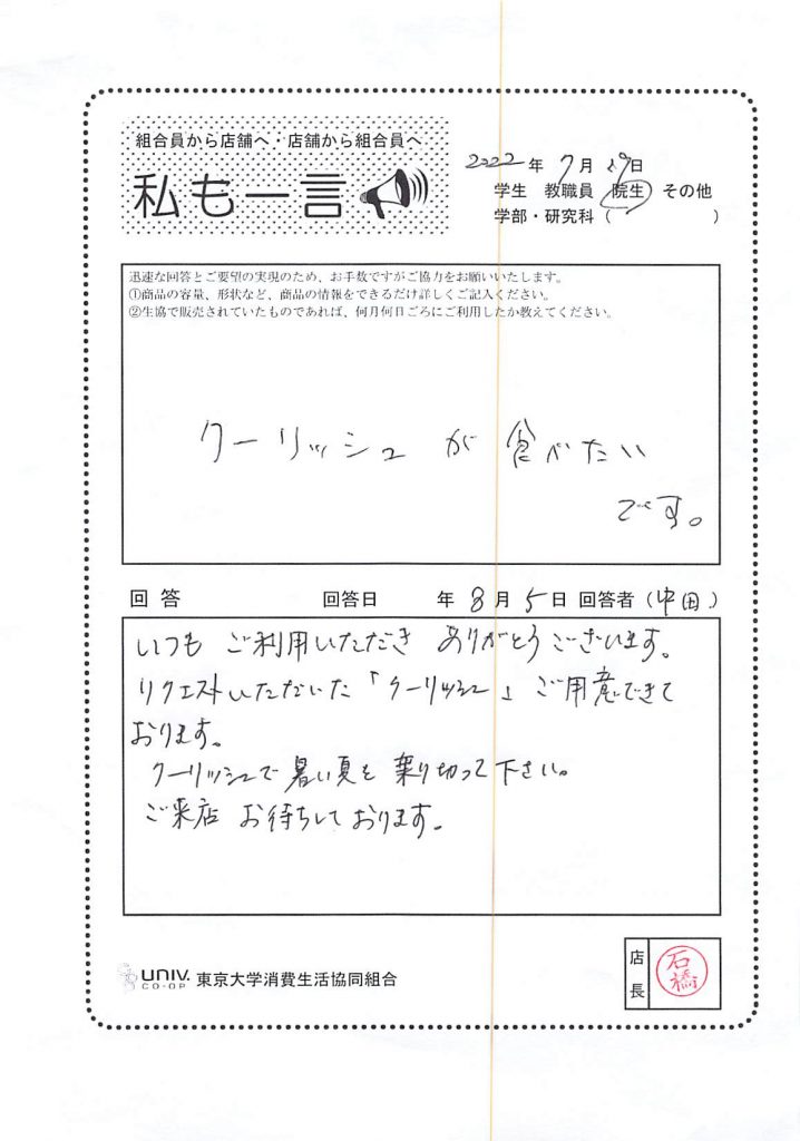 東大生協について