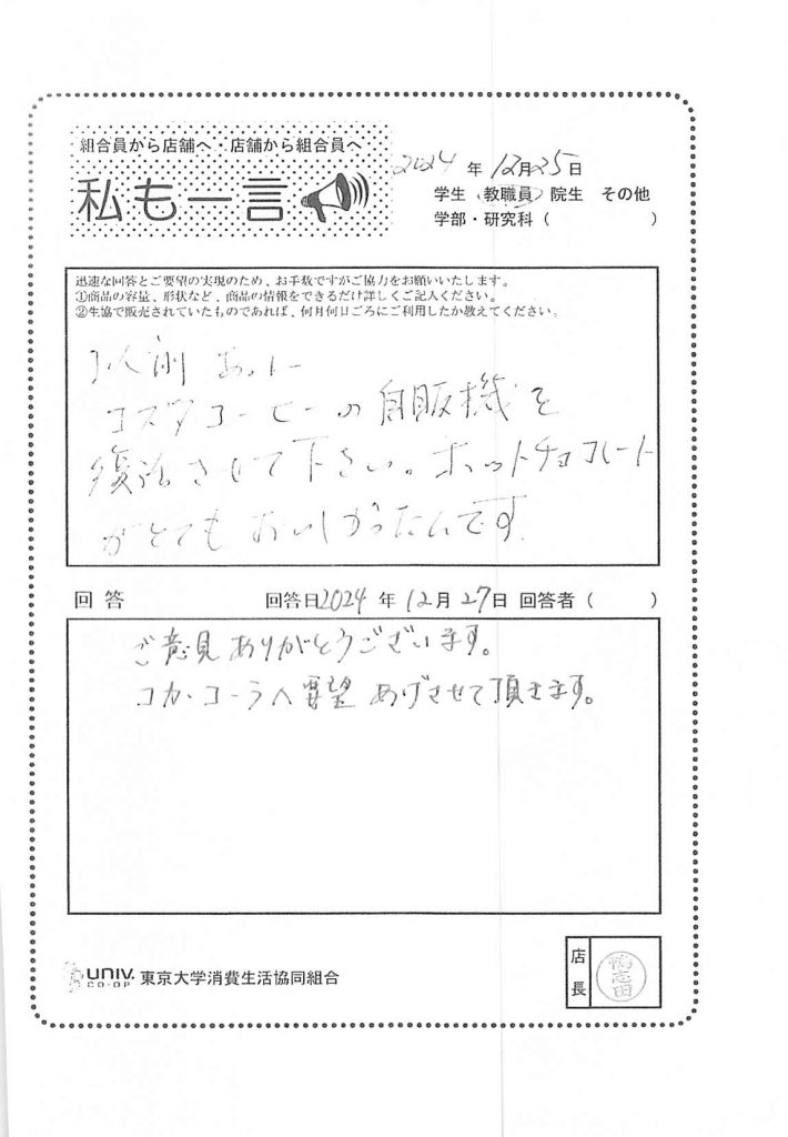 東大生協について