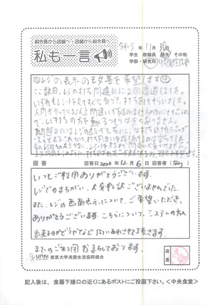 セルフレジ、生協マネー以外の決済方法追加して・・・