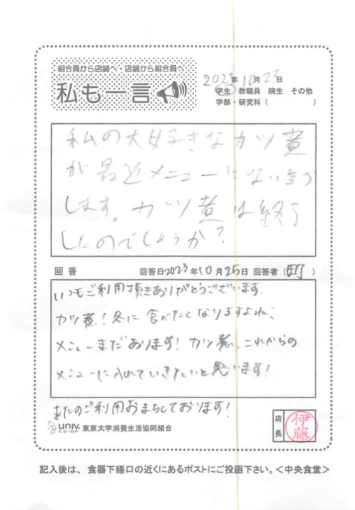 カツ煮は終了したのでしょうか・・・