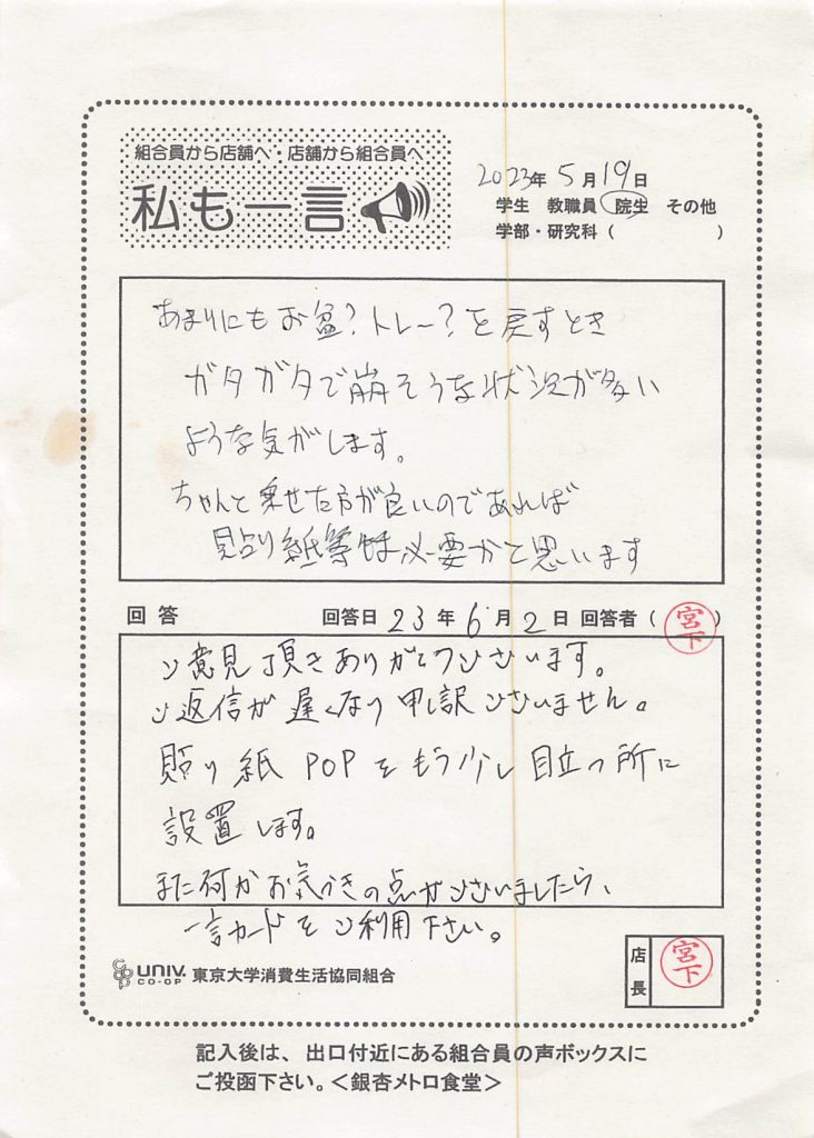 この度は貴重なご意見を頂き誠にありがとうございます。