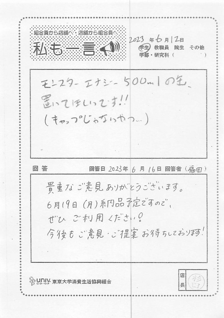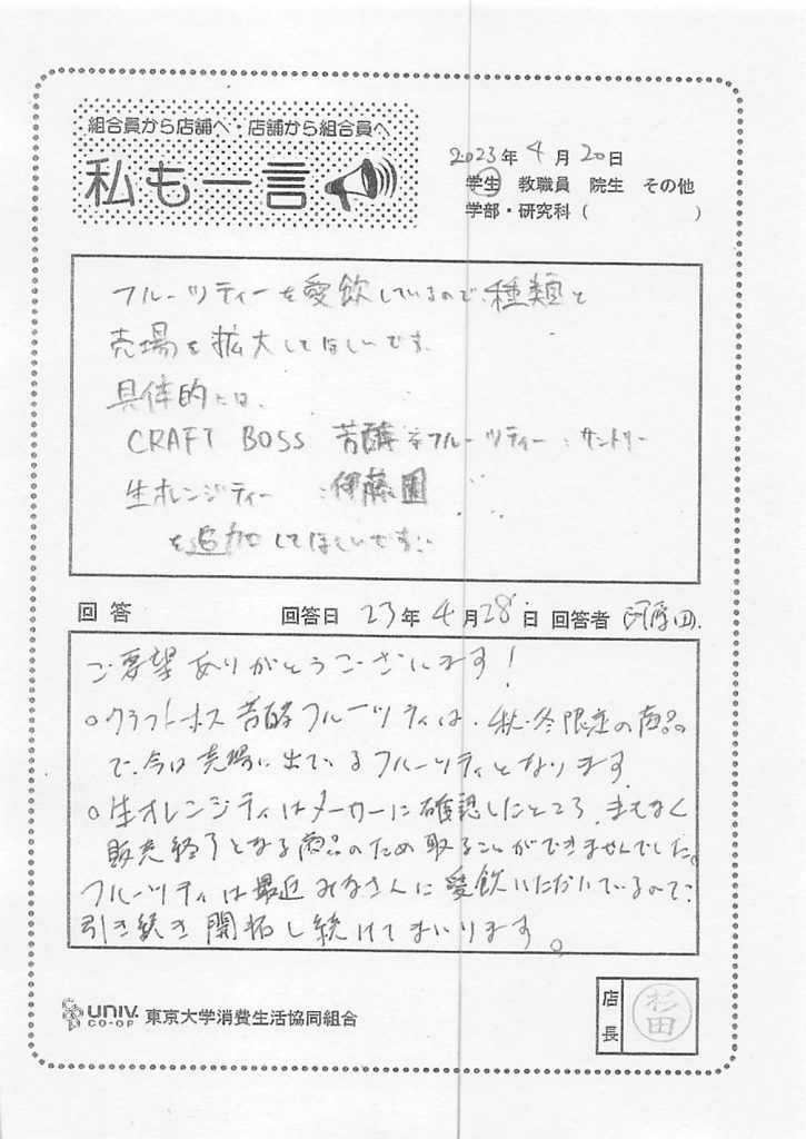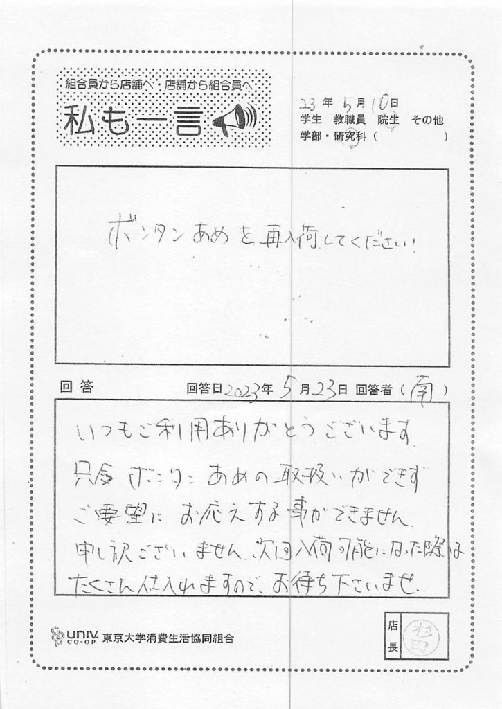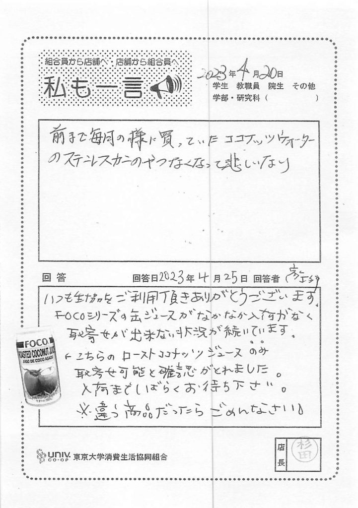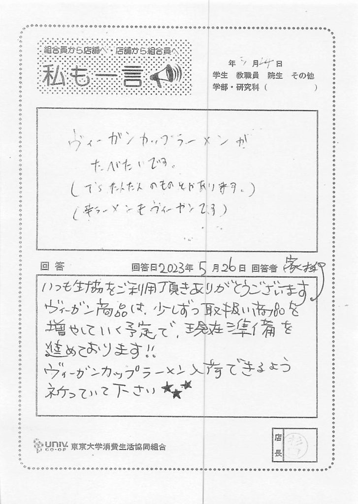 私は入学以来毎年ずーっと生協手帳(大)を・・・