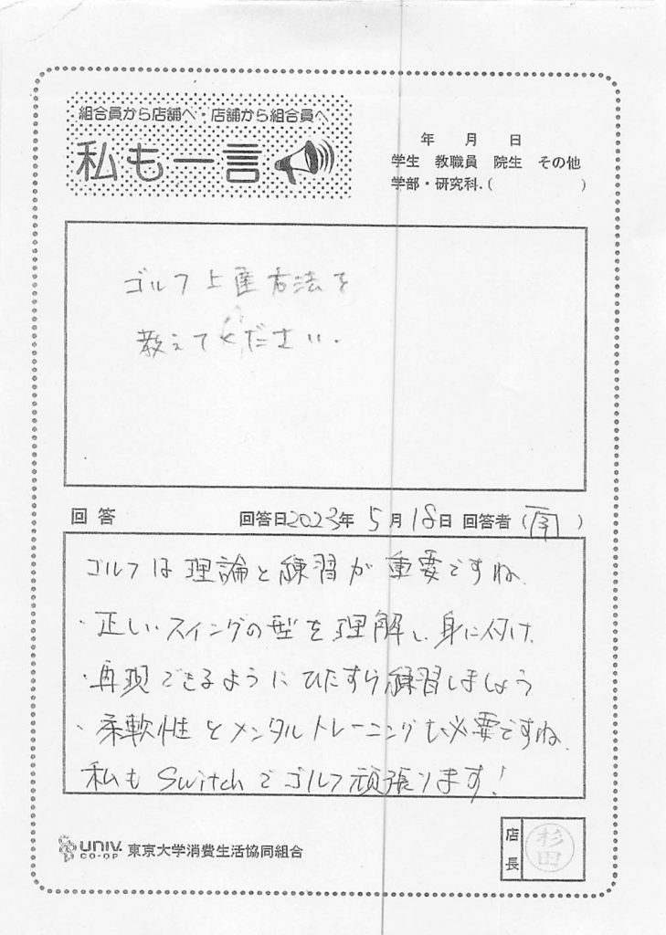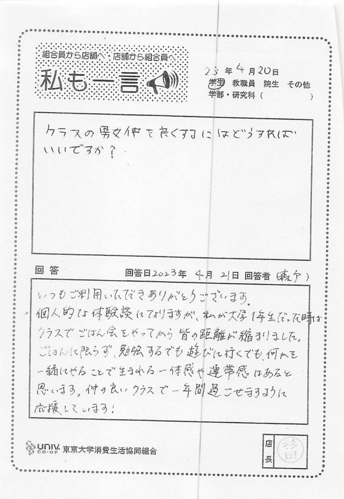 東大生協について