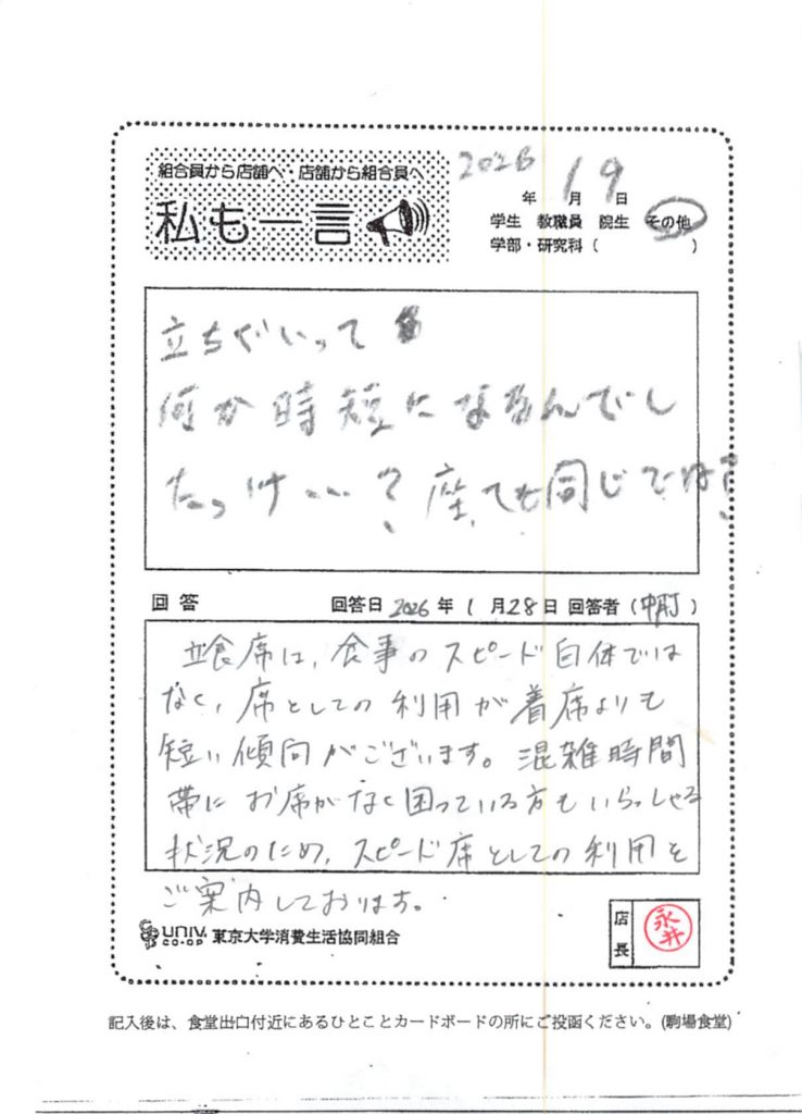 立食スペースによって回転率を上げる狙いだと思うのですが・・・