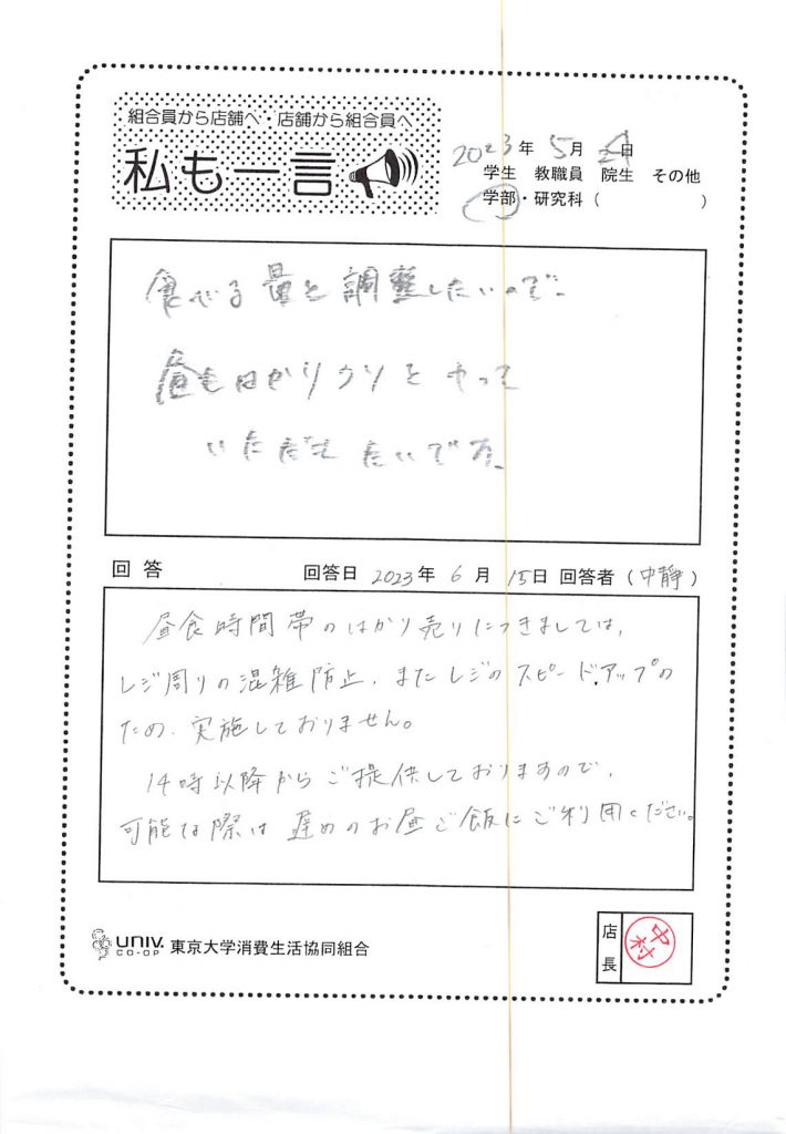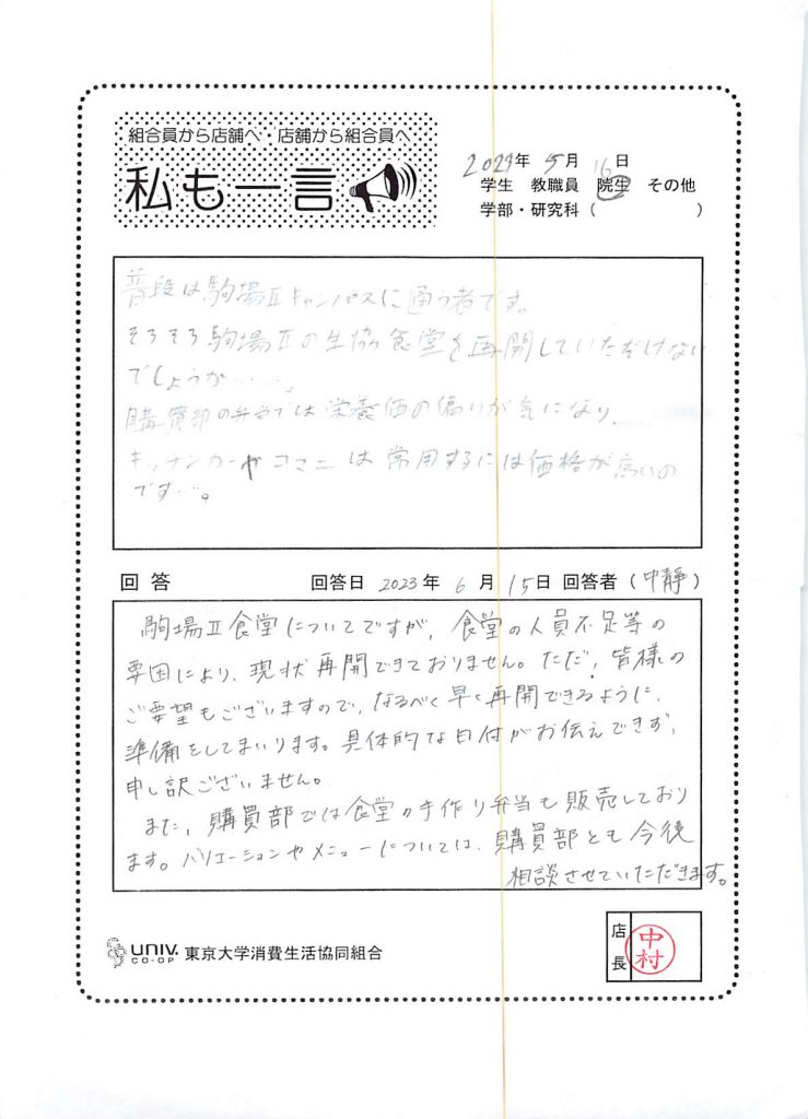 東大生協について