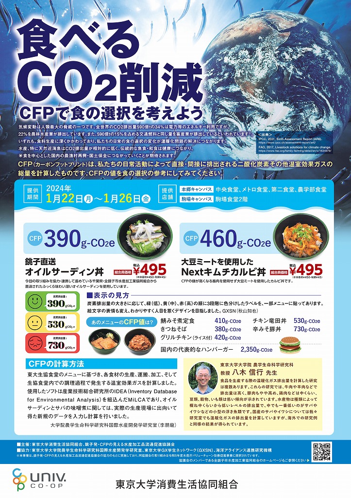1月22日~26日の期間、CFP(カーボンフットプリント)の値を表示した、銚子直送のオイルサーディン丼を提供します。