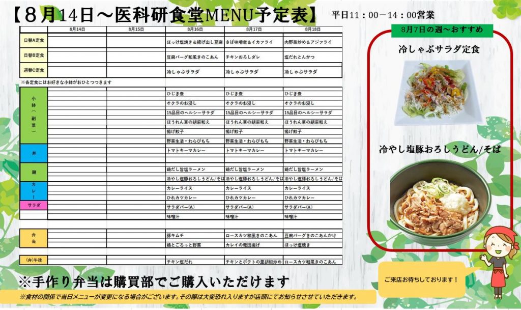 いつも医科研食堂をご利用いただきましてありがとうございます。