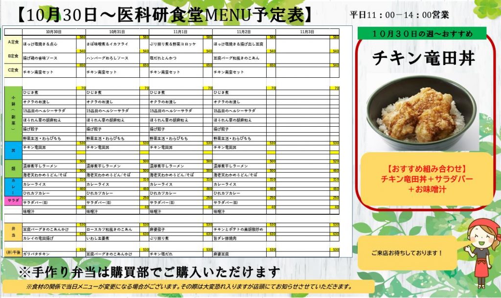 ●10月30日の週おすすめ…チキン竜田丼、C定食(手揚げチキン南蛮定食)
