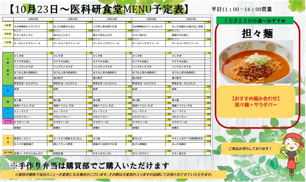 ●10月23日の週おすすめ…担々麺、C定食(チーズメンチデミソース)