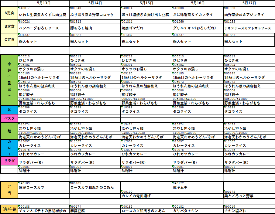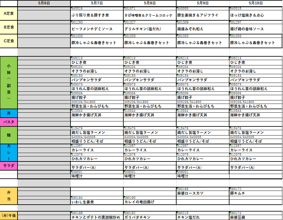 食堂・購買 複合店 20245/2 医科研 5/7~5/17医科研食堂メニュー予定 いつも医科研食堂をご利用いただきまして誠にありがとうございます。 医科研食堂の5/7~メニュー予定をお知らせいたします。 ●5月7日の週おすすめ…Cセット「豚冷しゃぶ&春巻きセット」 ●5月13日の週おすすめ…九州沖縄フェア Cセット「鶏天セット」「タコライス」 冷たいメニュー&九州沖縄フェア実施です!GW後もご利用お待ちしております! 5/7~5/10メニュー表 5/13~5/17メニュー表 Tweet お知らせ 一覧へ