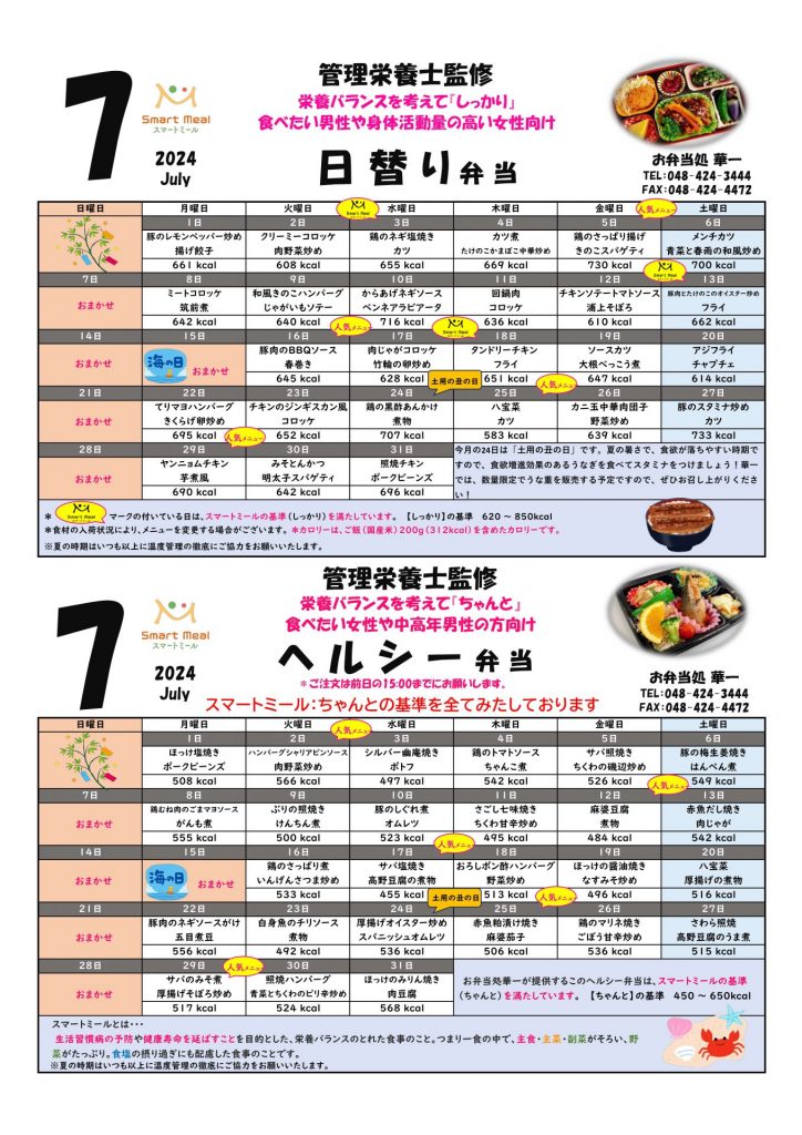 医科研購買 【7月】管理栄養士監修弁当 華一のメニュー表
