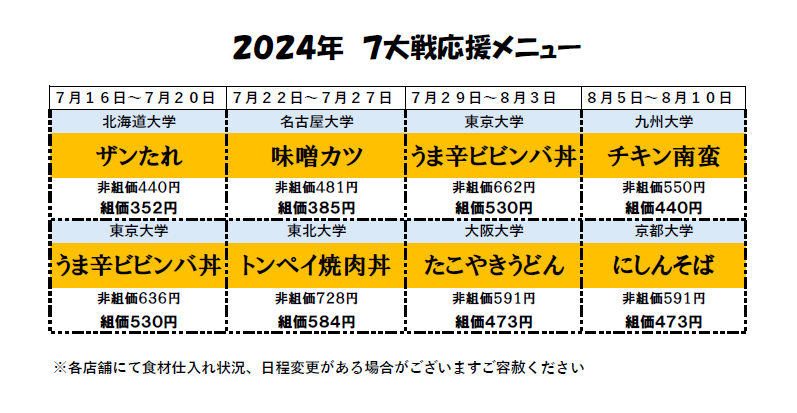 7月16日(火)から七大戦コラボメニューが食堂から提供されます!