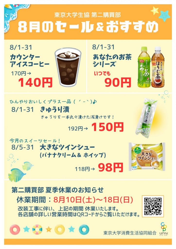 本郷第二購買部・浅野店・赤門店の7月のお弁当のラインナップ・月間ポスターです。