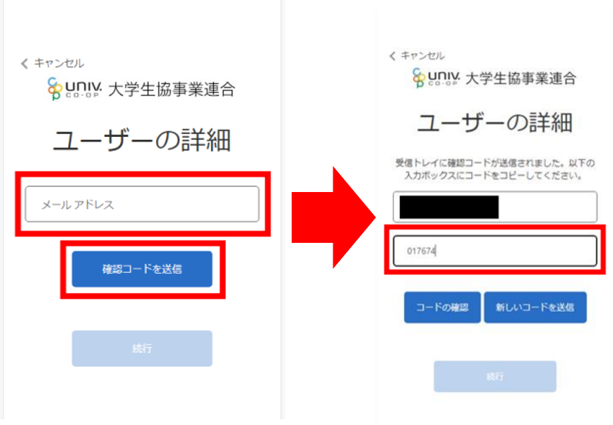 登録したメールアドレスを入力し、受信したパスコードを入力します。
