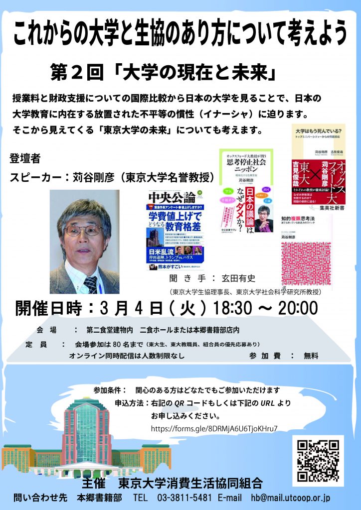 - 定員:会場参加は80名まで(東大生、東大教職員、東大生協組合員の優先)