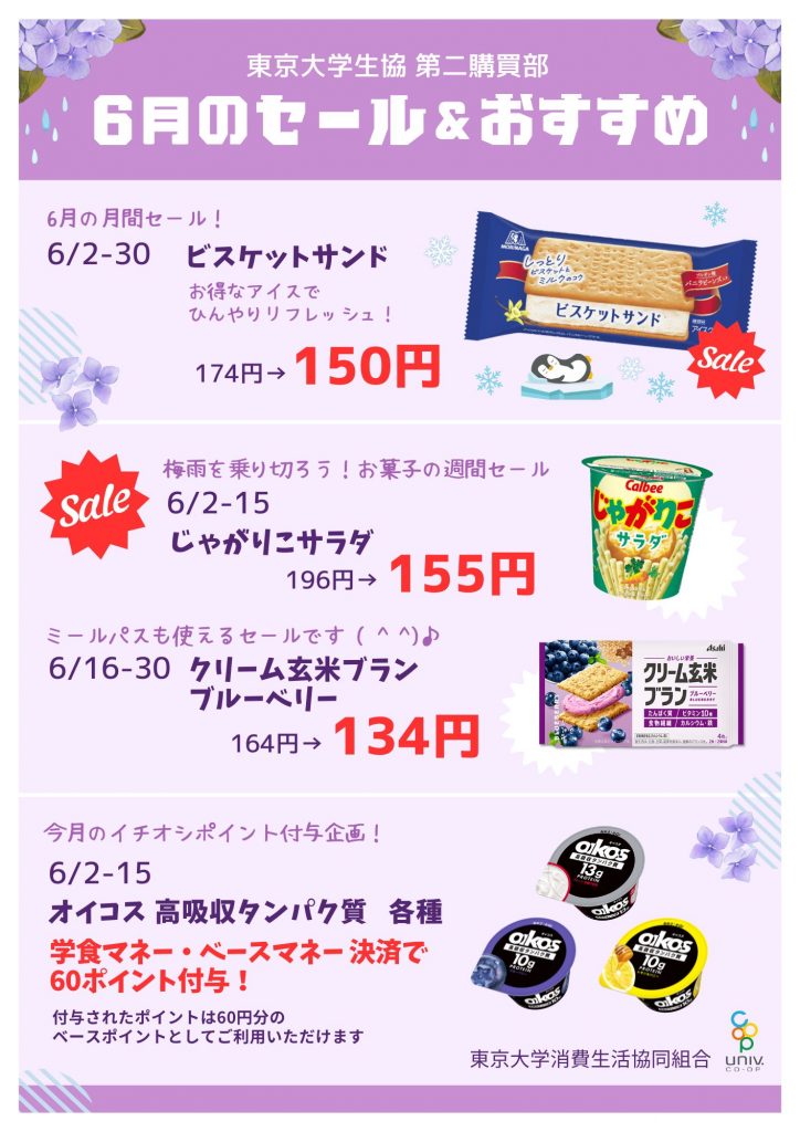 本郷第二購買部・浅野店・赤門店の6月のお弁当のラインナップ・月間ポスターです。