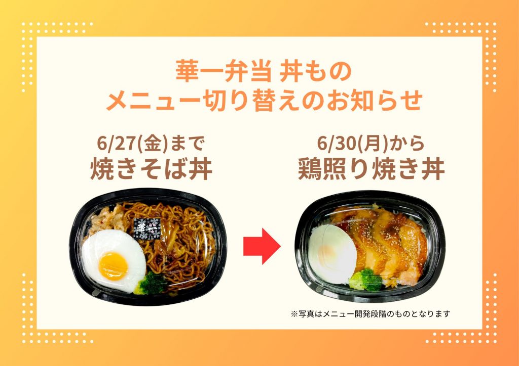 また、華一の丼ものメニューが下掲の画像の通り変更となります。(カツ丼は引き続き販売いたします。)