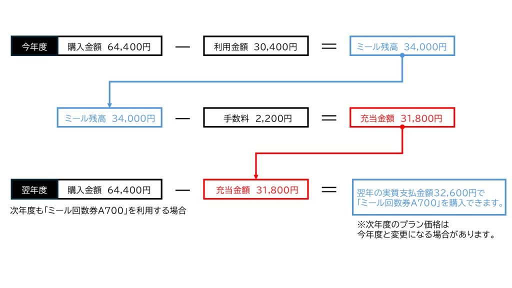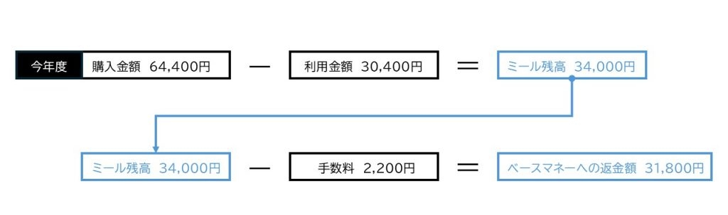 【返金の一例】※2026年度「ミール回数券A700」で30,400円分利用した場合