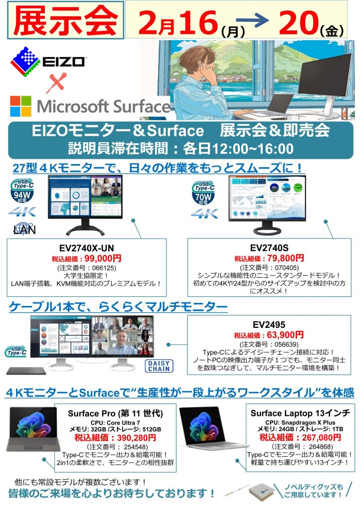 EIZOモニター&Surface 展示会&即売会開催 2/16(月)~2/20(金)
