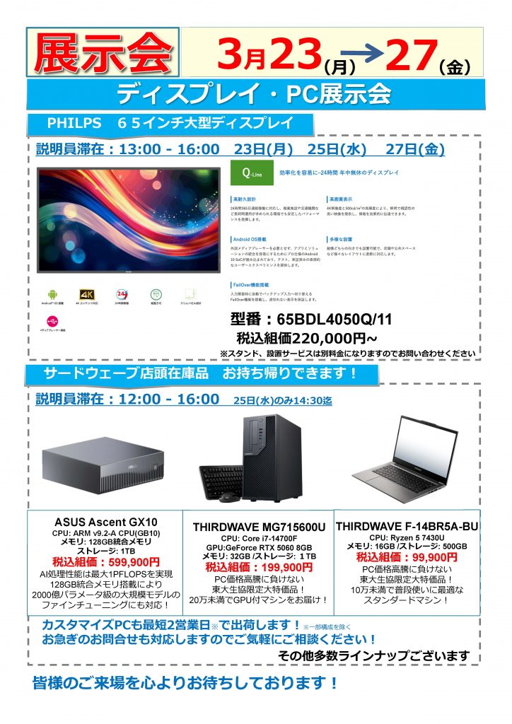 ディスプレイ・PC展示会 3月23日(月)~27日(金)