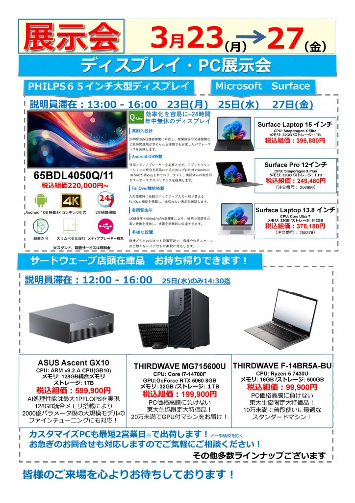 ディスプレイ・PC展示会 3月23日(月)~27日(金)