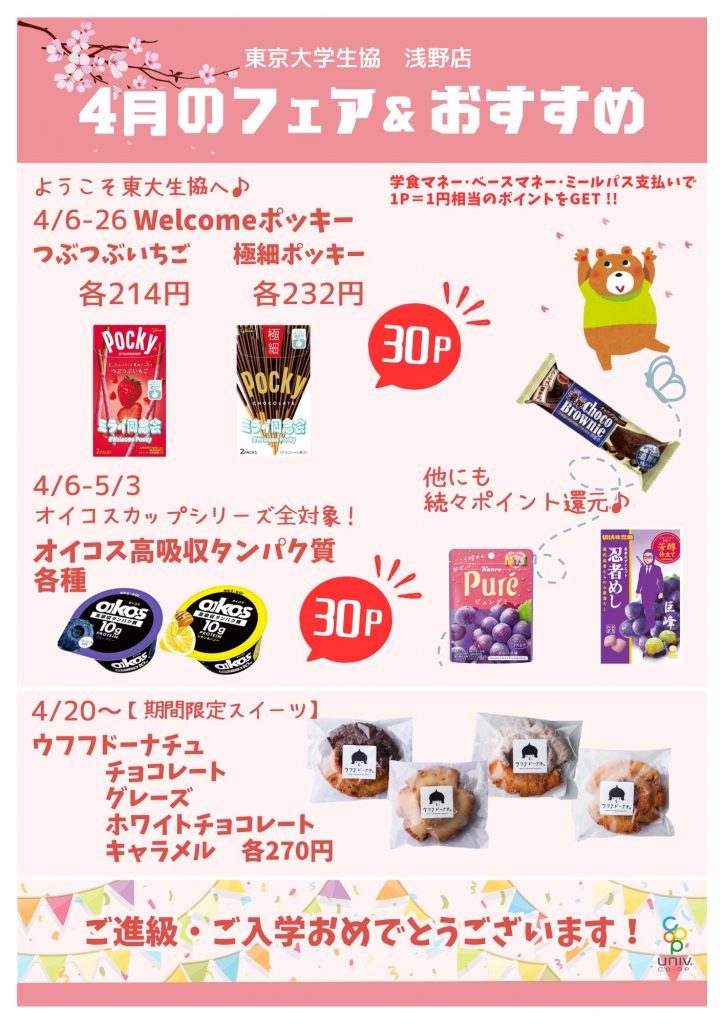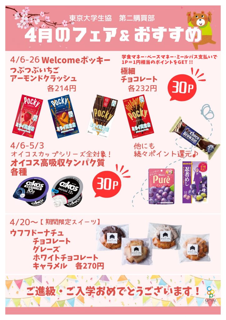 4月も生協マネー利用でベースマネーのポイントがGETできるフェアを実施します。ぜひご利用ください!