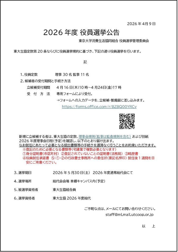 2026年度 役員選挙公告