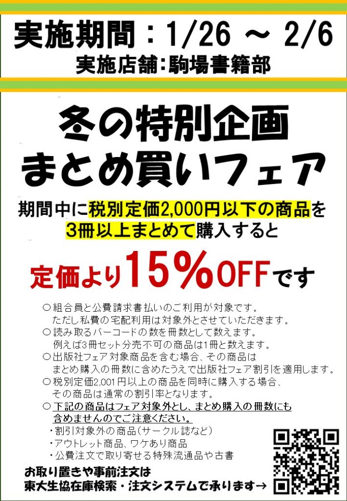 冬の特別企画 まとめ買いフェアのお知らせ(駒場書籍部)