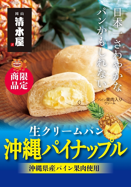 清水屋生クリームパン「塩キャラメル」「沖縄パイナップル」「マンゴー」を販売します!なくなり次第終了です。清水屋の中では今回初登場のフレーバーです!組価:各230円