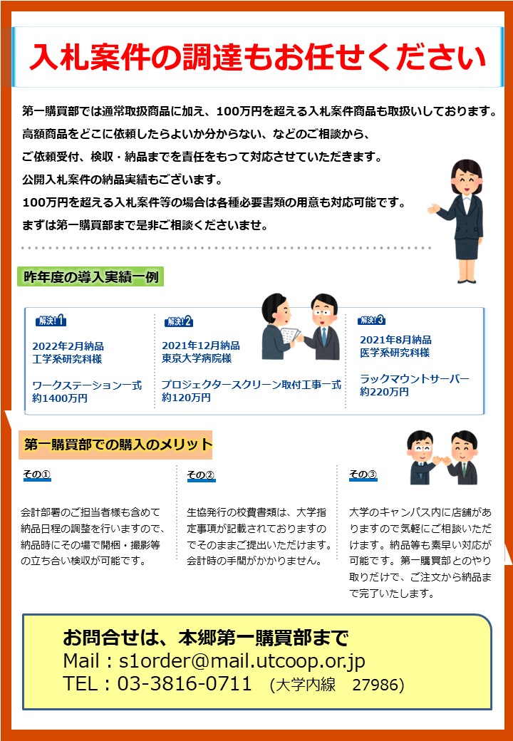 入札案件の調達も第一購買部へお任せください。