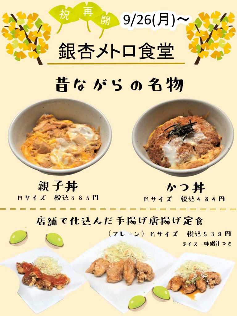 9月26日(月)より メトロ食堂営業再開します!