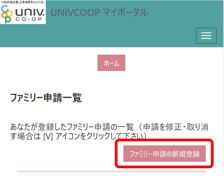 ※申請を間違えた場合、再度「ファミリー申請の新規登録」で登録してください。