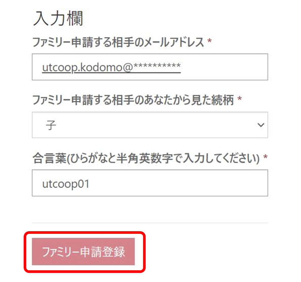 ・ファミリー申請する相手のメールアドレス