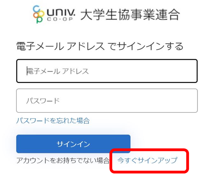 ※忘れないように、univcoopマイポータルに登録したアドレスでのご登録をおすすめします。