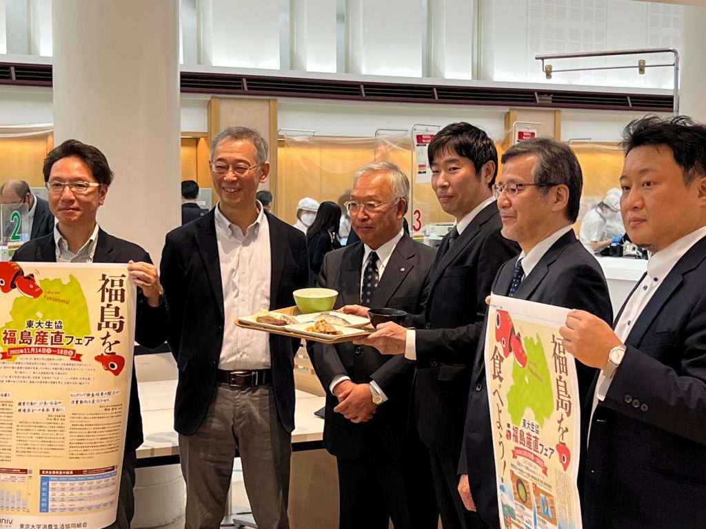 14日(月)に中央食堂でスタートセレモニーを行い、中嶋康博先生・八木信行先生(農学生命科学研究科)、関谷直也先生(情報学環)、小山良太先生(福島大)、福島県漁連の鈴木専務にご挨拶いただきました。